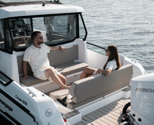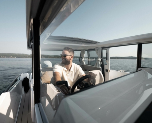 Skandinavisk design møter håndverk på det åpne havets gleder og muligheter. Med et lite anerkjennende nikk til de nordiske designprinsippene gir Coupe 830 deg et inntrykk av beroligende selvsikkerhet, også når været ikke spiller på lag.