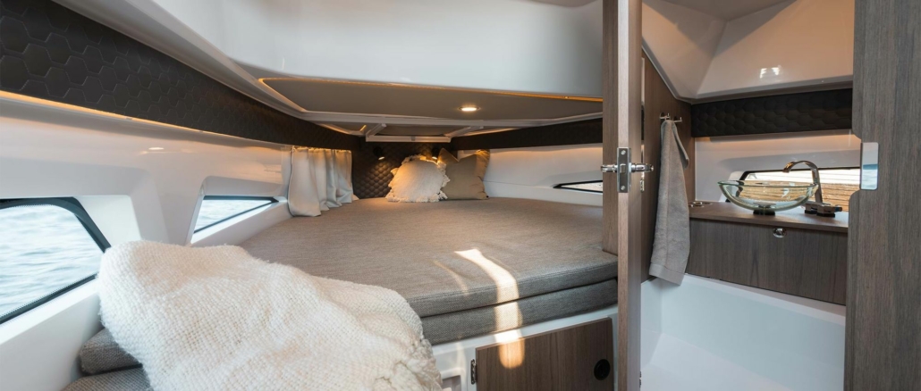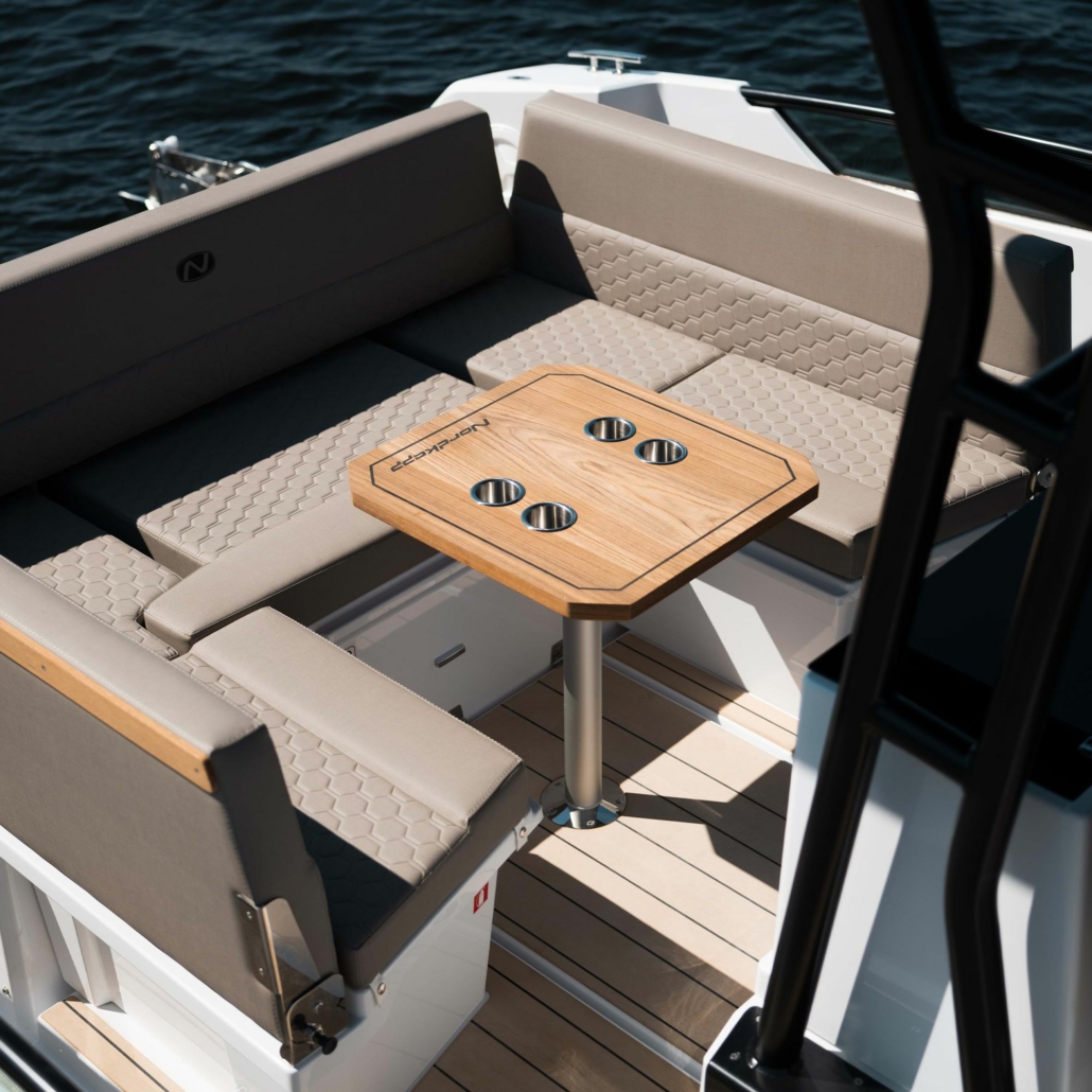 Enduro 830 setter en ny standard for komfort i en skjærgårdsjeep. Den nyutformede akterloungen rommer både pantry, wet bar, spisebord og en ekstra solpute som tilvalg – og kan forvandles til en imponerende solseng på 2 x 2,6 meter. Kanskje den største som noensinne er plassert på en 8-meters båt. Her kombineres den åpne følelsen fra en skandinavisk cruiser med komforten du forventer fra en styrhusbåt. I motsetning til tradisjonelle daycruisere eller mindre skjærgårdsjeeper, gir denne layouten deg friheten til en åpen skjærgårdsjeep – uten at det går på bekostning av plass eller avslapning. Enten du vil nyte sola, samle venner eller bare ta inn utsikten, gir Enduro 830 deg en opplevelse av høy klasse, hver eneste gang du går om bord.