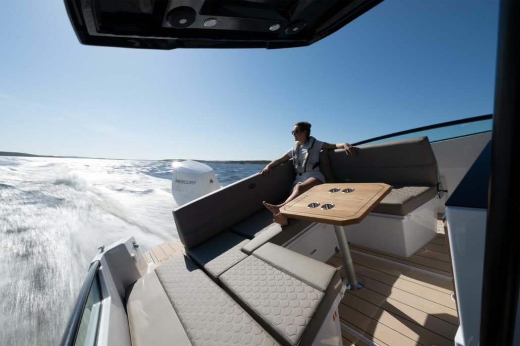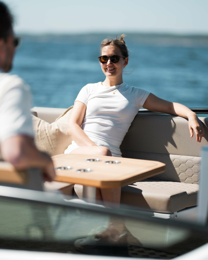 Badeplattformene på Enduro 830 er laget for å løfte opplevelsen av livet på sjøen. I motsetning til mer lukkede løsninger som daycruisere eller tradisjonelle styrhusbåter, utnytter denne skjærgårdsjeepen den åpne kontakten med vannet maksimalt. Plattformene er brede, stabile og perfekte både for bading og enkel ombordstigning, med praktisk tilgang direkte fra akterloungen.