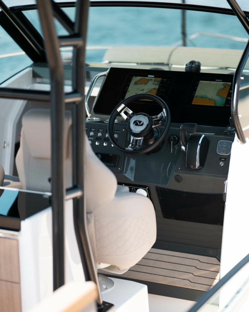 Enduro 830 med T-top og full kalesje gjør den til mer enn en klassisk skjærgårdsjeep – den forvandles til en allsidig, skandinavisk cruiser. Kombinert med Webasto-varmer (tilvalg), får du komforten man gjerne forbinder med en daycruiser eller styrhusbåt – ideelt for lengre turer og overnattinger. Båten har brede passasjer på begge sider, noe som gir fri bevegelse selv med kalesjen fullt oppsatt.