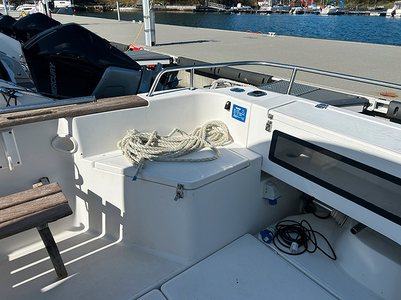 Badeplattformen sørger for enkel ombordstigning akter, men baugen er også et godt egnet sted takket være det nedsenkede dollbordet og de kraftige rekkene på styrbord side.