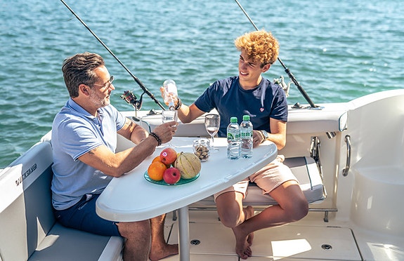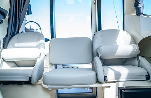Bergen Marine har utstyrt båten for maksimal komfort på sjøen – Det eneste som stort sett mangler er en teinehaler for de som trenger det og det fikser vi selvfølgelig.