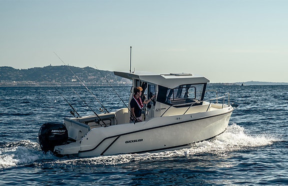Tilbring mer tid med snørene i vannet med det helt nye 625 Pilothouse. Omtenksomt designet for å maksimere hver bit av dekksplass sammen med en velutstyrt lukket lugar, er dette en båt som enkelt kan brukes for en rask overnatting. Nå fiskeplassen din raskt med en maksimum 150 hk Mercury påhengsmotor, og velg blant Quicksilver utstyrspakker for de mest populære sikkerhets-, bekvemmelighets- og komfortalternativene for å forbedre hver tur.