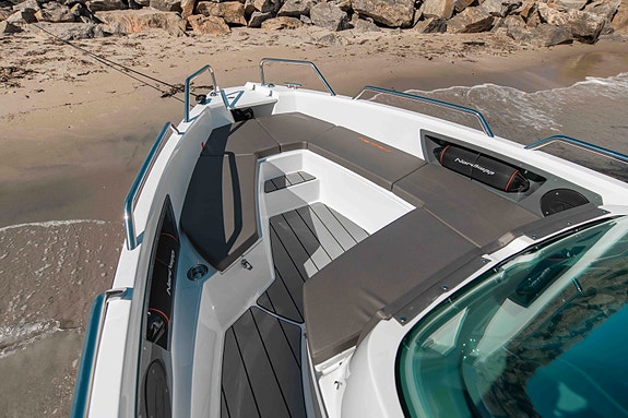 Langs baugen, både på styrbord og babord, finner du i Enduro 605 praktiske stuerom med god plass. Flere av disse stuerommene er lange nok til å huse vannski og wakeboards, eller brede og dype nok til å få plass til koffert eller bag.