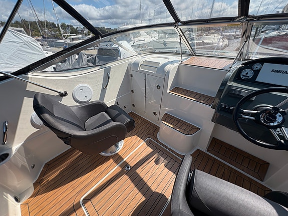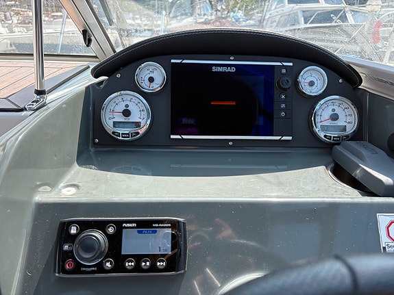 Denne båten har nylig vært på service, og er spekket med utstyr, som Kartplotter med ekkolodd, stereo anlegg, kalesje, Dusj, Kjøleboks, bord, vannskistang, Teak Laminat Dørk, havnetrekk , +++