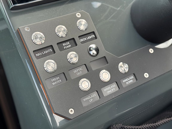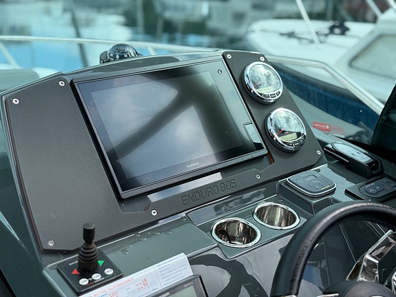 • Garmin 1222 XSV – 12″ kartplotter • kart • liten kalesje• Baugpropell • Trådløs fjernstyring av ankervinsj og baugpropell