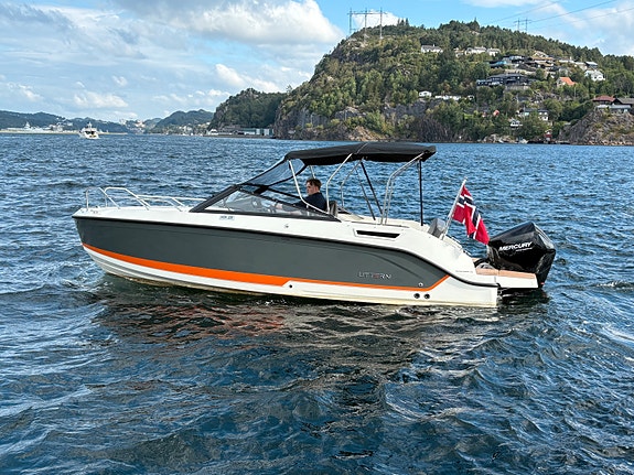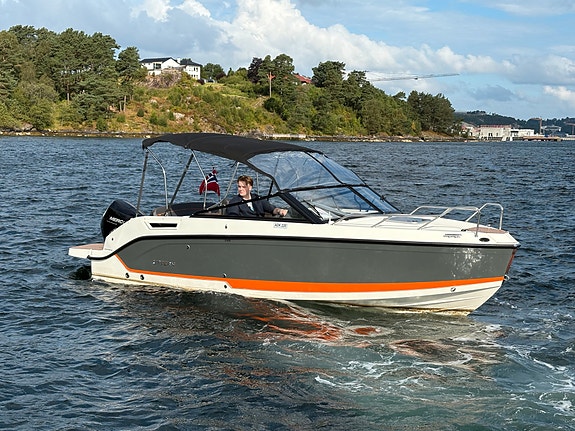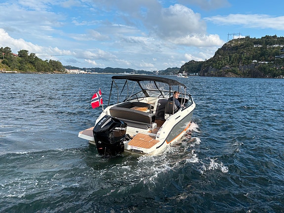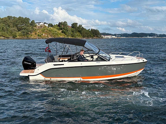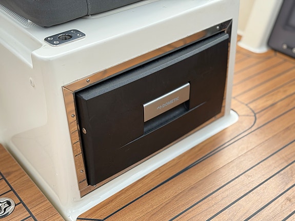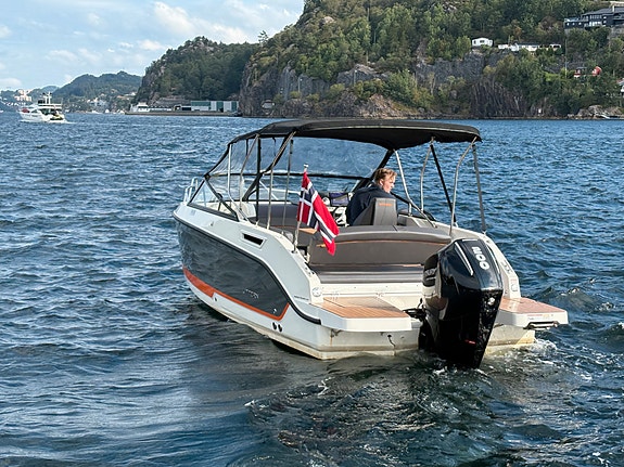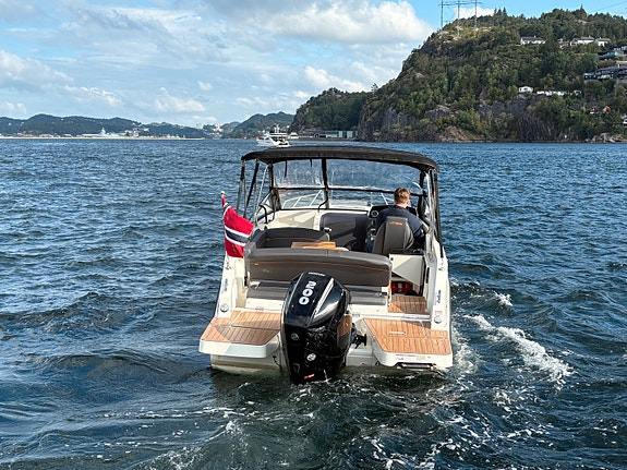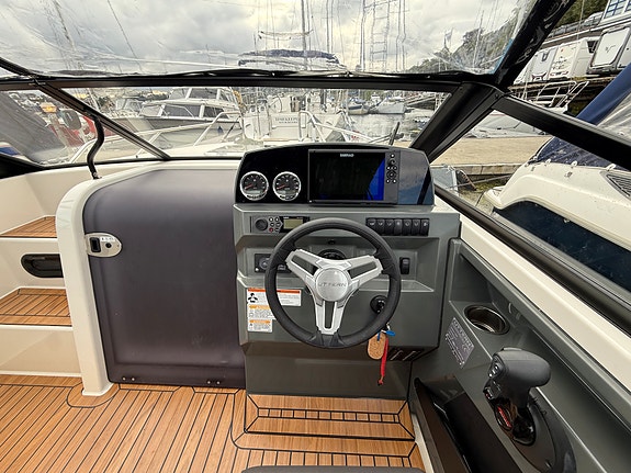 Havnekalesje – Full kalesje – Premium pakke – Dusj i cockpit – kjøleskuff – vannskistang – sjøtoalett – vask med kran – koketopp på gass – led interiør – Simrad kart og ekko 9″ – Fusion stereo m DAB – tau – Fendre ++