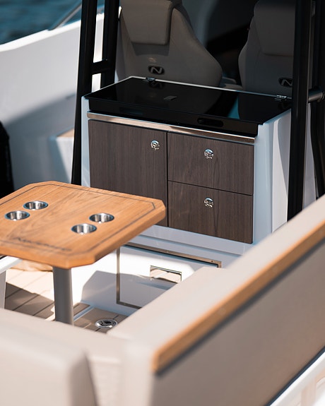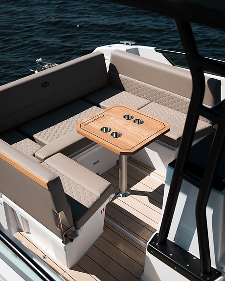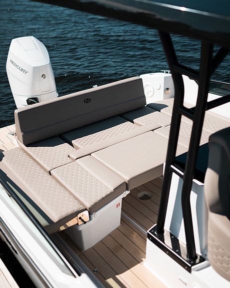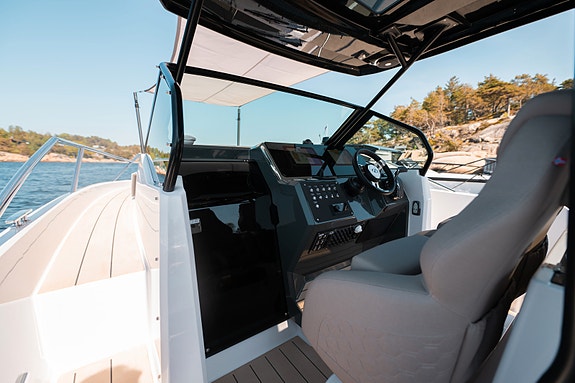 T-top-en med integrert solseil og full kalesje gjør Enduro 830 til mer enn en klassisk skjærgårdsjeep – den forvandles til en allsidig, skandinavisk cruiser. Kombinert med Webasto-varmer (tilvalg), får du komforten man gjerne forbinder med en daycruiser eller styrhusbåt – ideelt for lengre turer og overnattinger. Båten har brede passasjer på begge sider, noe som gir fri bevegelse selv med kalesjen fullt oppsatt. Kalesjesystemet består av fire hoveddeler, som gir deg fleksibilitet til å tilpasse deg været – uten å miste den åpne følelsen du forventer i en båt med T-top.