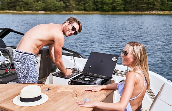 Premium Edition Upgrade: Dusj I cockpit, kjøleskap sjøtoalett, vask med kran, ovn med butangass, led interiørlys, simrad gps/chart plotter 9″ nss evo3s med hdi-giver, fusion lydannlegg ms-ra70n med to høyttalere, dab-adapter med antenne, fortøyningspakke-