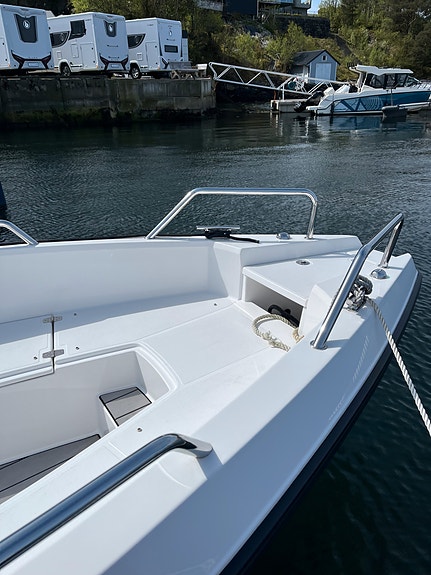 Med sitt åpne design, høye fribord og smarte løsninger er denne modellen ideell for både dagsturer, vannsport og familiebruk. Båten er romslig, trygg og moderne – og passer like godt til nybegynnere som erfarne båtførere.