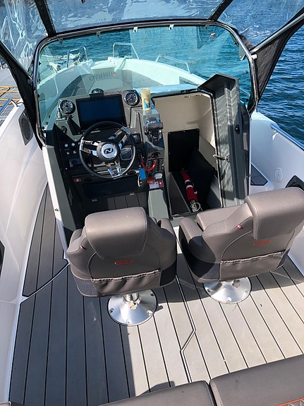 Med sitt åpne design, høye fribord og smarte løsninger er denne modellen ideell for både dagsturer, vannsport og familiebruk. Båten er romslig, trygg og moderne – og passer like godt til nybegynnere som erfarne båtførere.