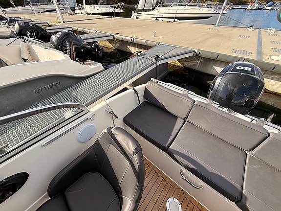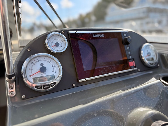 Topp utstyrt: – Premium pakke m/bord/solpute forut – Full akterkalesje og havnekalesje forut/akter – Simrad 7`kartplotter m/ekkolod og kart – Fusion / USB Musikkanlegg m/Bluetooth – Hydraulisk styring Komplett putesett – m.m