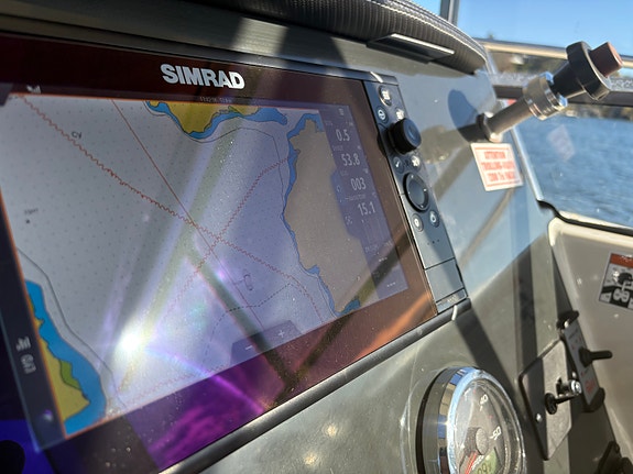 - Kraftig Flyte Elektronikk pakke med 9 tommers Simrad NSS9 EVO3 inne med ekkolodd og gjennomgående svinger. Komplett med stereo – Kartplotter ute 7 Toms