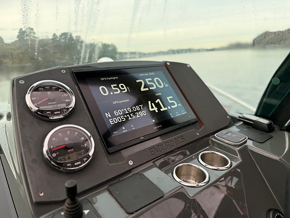 • Garmin 1222 XSV – 12″ kartplotter • kart • liten kalesje• Baugpropell • Trådløs fjernstyring av ankervinsj og baugpropell