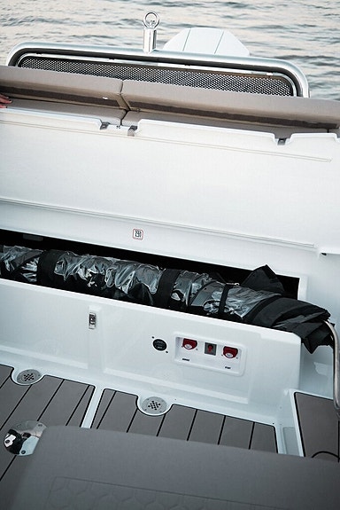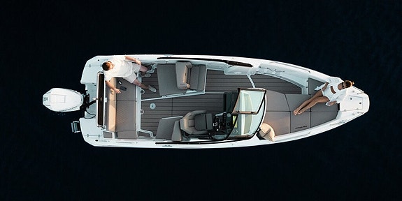Fokuset i denne båten ligger virkelig i komforten ombord – med høye fribord og romslige akterdekk er båten trygg for både voksne og barn.