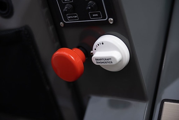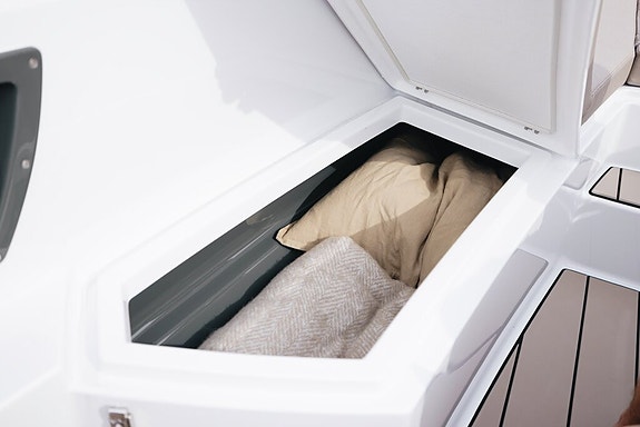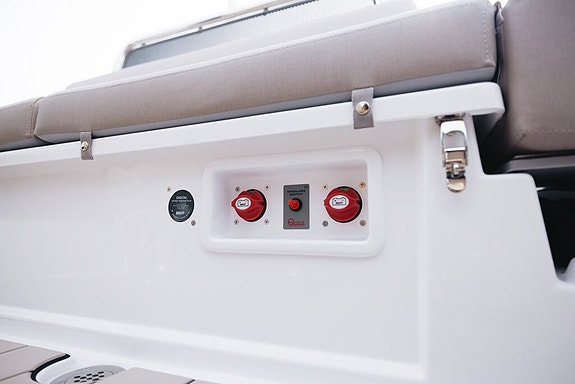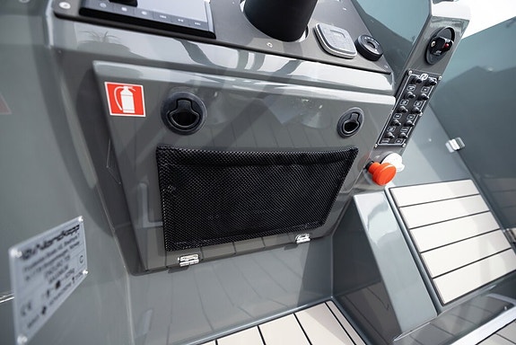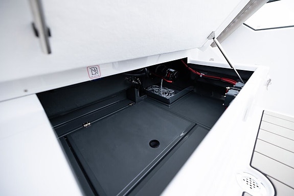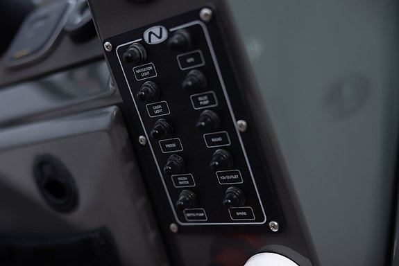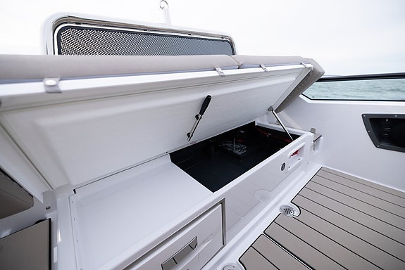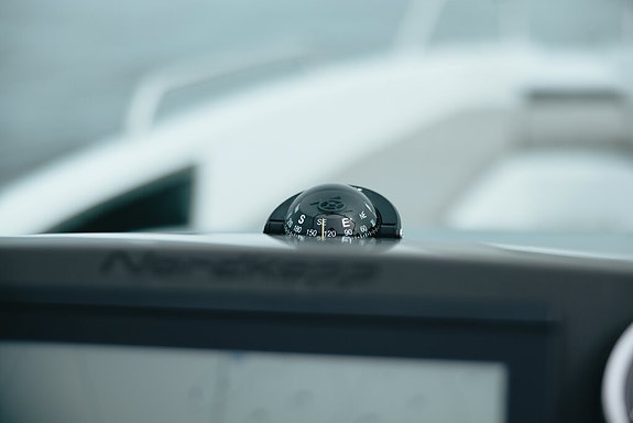 Highline +: Garmin 1223 XSV, innvenndig svinger, Fusion RA210, 2 høytalere, kjøleskuff, solpute, S-Deck, baugpropell, trimflaps m/autotrim, ankervinsj gjennomføring