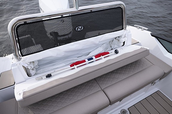 Akterbenken på Enduro 705 har et integrert regntrekk som trekkes enkelt over sittebenken på akterdekket.