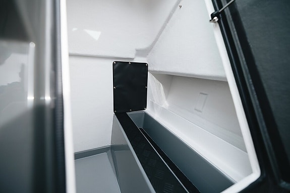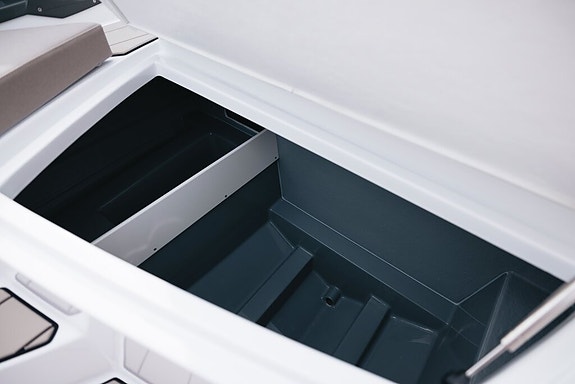 I forkant av konsollen finner du et eget stuerom for tilgjengelig utstyr som kjørekalesje – her er det også god plass til bagasje.