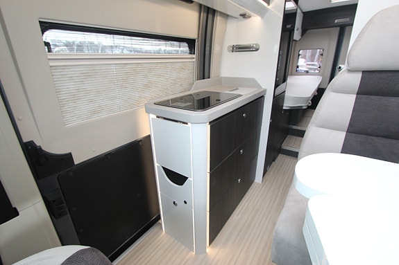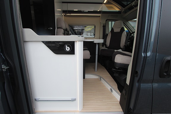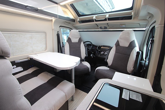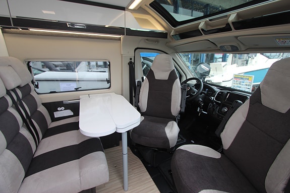 I salong har du foldbart bord, mulighet for å gjøre større etter behov. 2 vendbare pilotstoler i front. Mulighet for å lage til seng i salong.