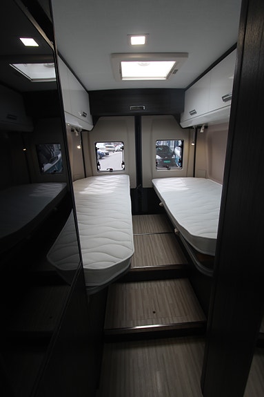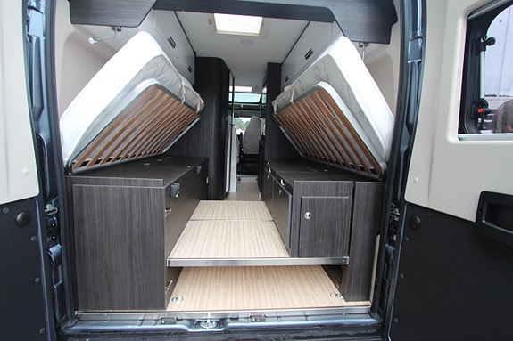 Benivan 160 er den mest populære bybobilen fra Benimar med to enkle senger bak, mulighet for å gjøre om til stor dobbelseng! Det er også godt med lagringsplass under seng. må sees! 🙂