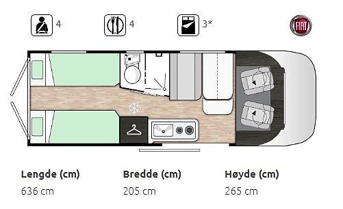 - Mulighet for å lage til ekstra seng i salong, totalt 4 soveplasser