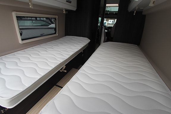 Nydelig bybobil fra Benimar med enkle senger bak, meget praktisk løsning!