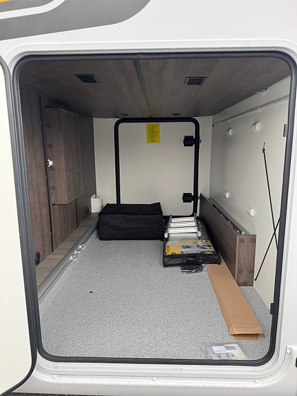 Godt med lagringsplass både over og under seng. Det er også plass til sykler i garasjen om ønskelig med to store garasje dører på hver side.