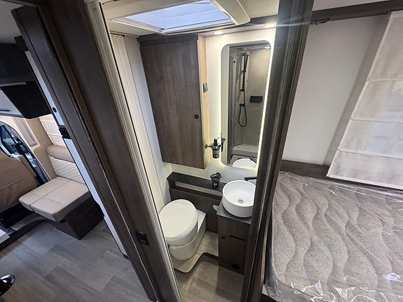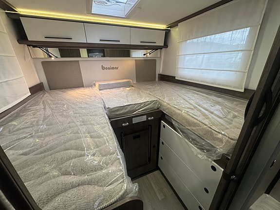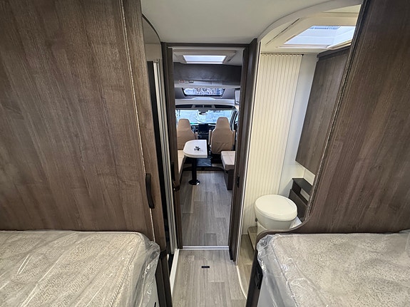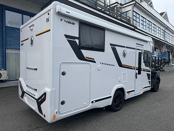 Tessoro 468 har da kombinasjonen med 2 to enkle senger bak og face 2 face løsning i salong. En meget attraktiv planløsning. Seng bak kan lett gjøres om til en stor dobbelseng ved å trekke ut plate i midten. Det er også trapp opp til seng når ikke platen står ute. Trappen kan også lukkes opp fra innsiden slik at du lett får tilgang til garasjen.
