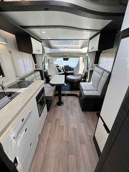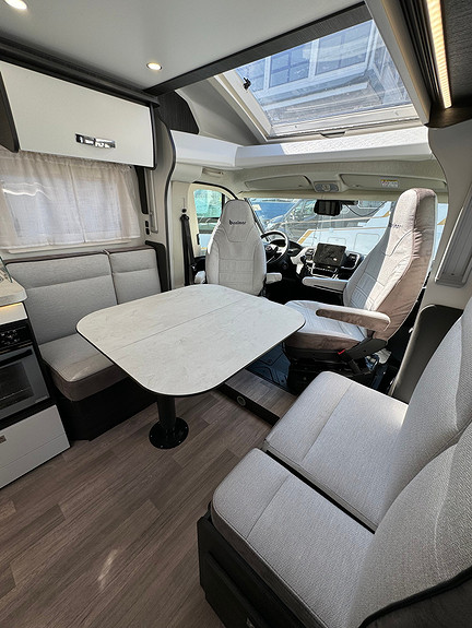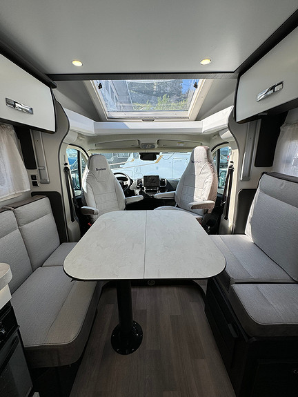 .Bobilen er registrert for 4, face-2-face salongen oppleves som meget romslig og har 2 vendbare pilotstoler i front. Det er også en elektrisk takseng over salong.