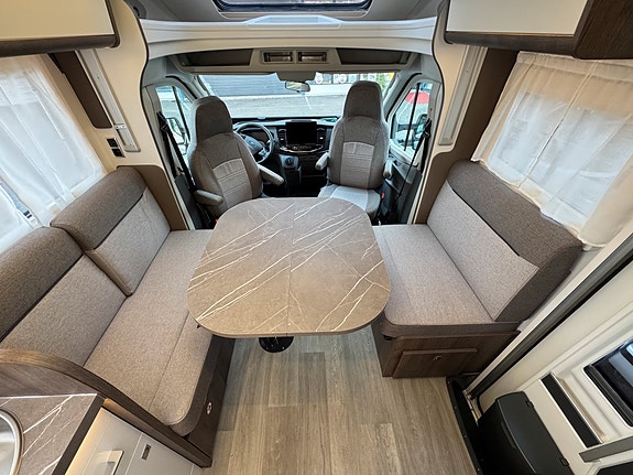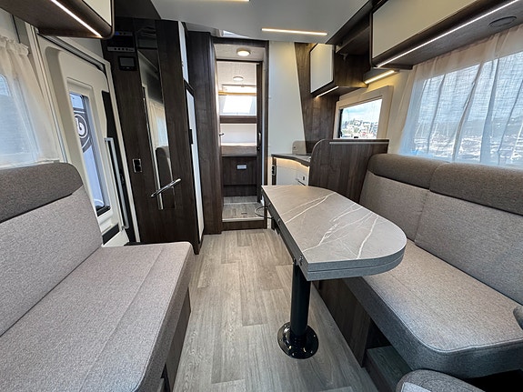 Face-2-Face løsningen i salong gjør at du får en meget romslig og luftig løsning, må sees! – Luftig, lys og trivelig salong. I sittegruppen kan du også få opp to seperate sitteplasser i kjøreretning, noe som gjør det behagelig for passasjerer å være med på tur. Det er og elektrisk senkeseng over salong.