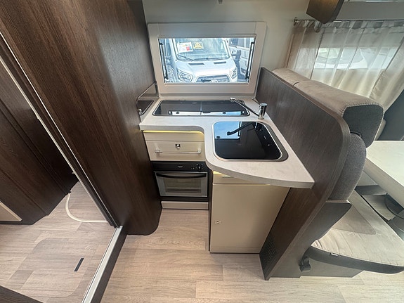 På kjøkken er det 3 gassbluss, stekeovn, stort kjøleskap med kjøleskuff og egen frys. Kraftig truma varmesystem som varmer opp vann på gass/strøm.