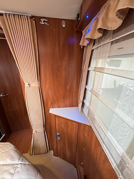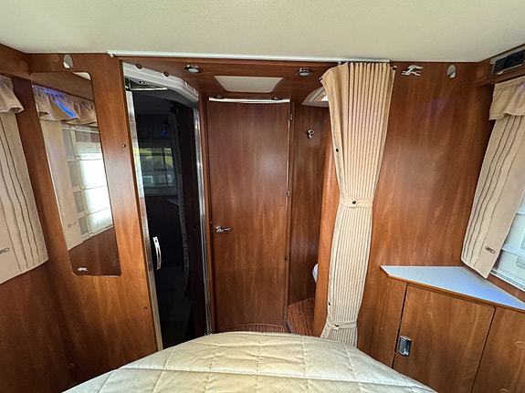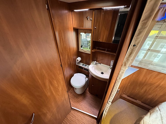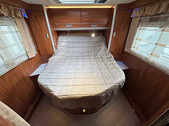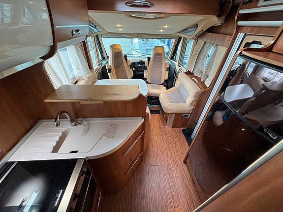 Det er gode lagringsmuligheter i bobilen, stor garasje, mye skapplass og det doble gulvet er dyp med egne innvendige luker. Må sees!
