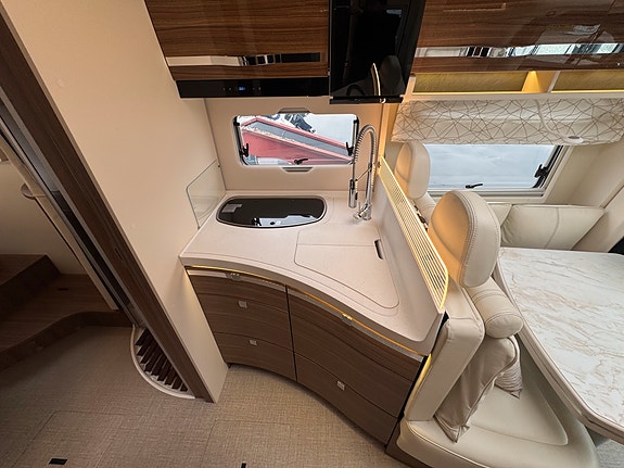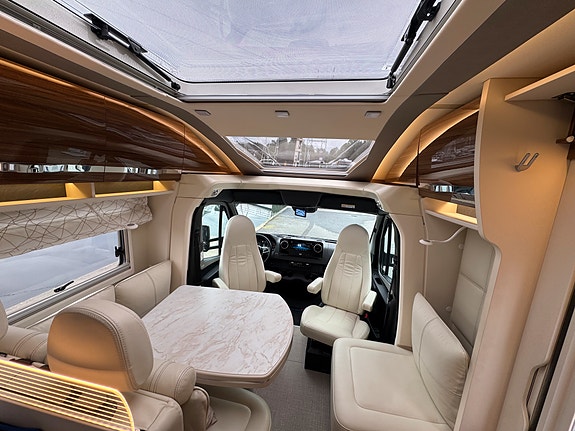 Den er høyt utstyrt, med bla Hydrauliske støttebein, Adaptiv cruise, Alde og Starlight dome panorama takluke.