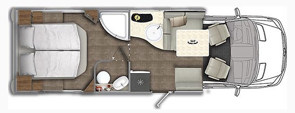 Nydelig planløsning med romslig L-sittegruppe fremme, svært luftig salong da denne modellen panorama takluke istedenfor takseng. Dobbelseng bak. Det er også mulig å lage til seng i salong om det skulle bli behov for det.