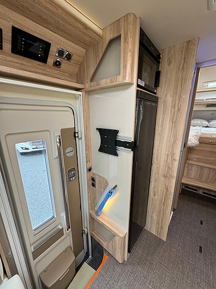 Vi har nå inne en Eura Mobil Integra Line 720 EF, 2024 modell! To enkle senger bak, takseng over førerhus, face-2-face salong. En meget populær planløsning!