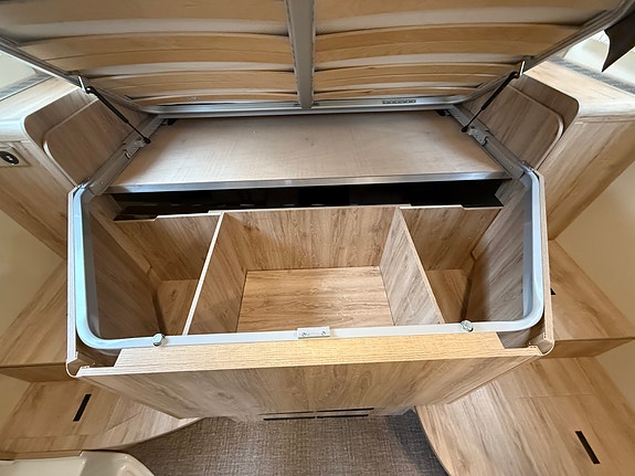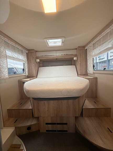 Perfekt bobil for opptil 4 personer, det er to pilotstoler gjemt under salong som kan brukes ved behov.