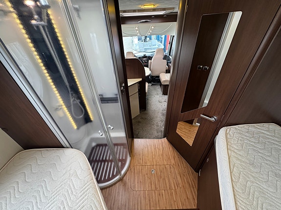 Vi har fått inn Aristeo 660. En hel-integrert bobil fra Benimar med enkle senger bak + takseng fremme.