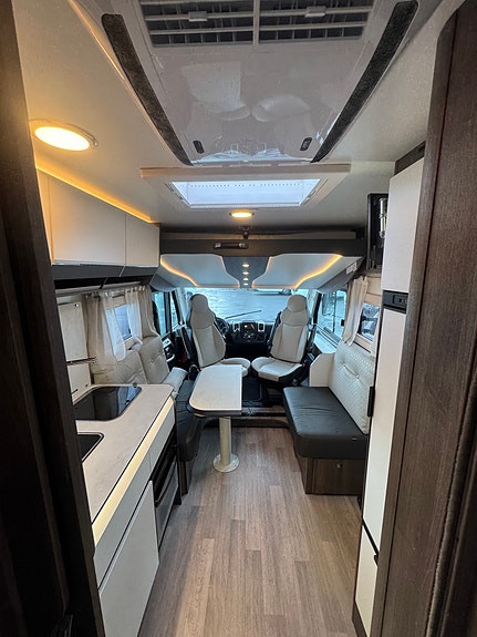 Vi har fått inn en velholdt Amphitryon 997 2021 modell, en meget lekker bobil med smarte planløsninger. Amphitryon 997 har midstilt dobbelseng + takseng fremme og face 2 face salong. En populær planløsning!